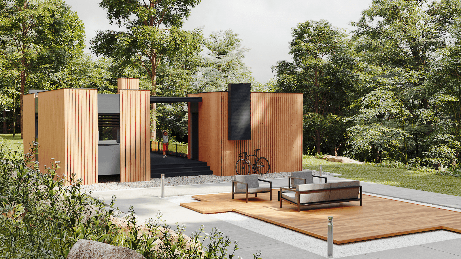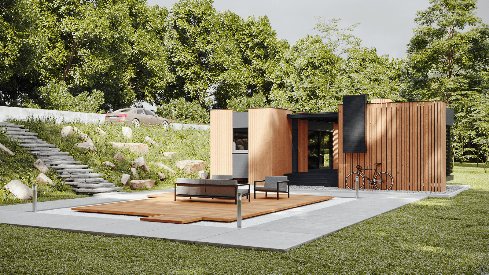 Το MMH21_M.02 είναι μια αρθρωτή μονάδα που αποτελείται από δύο κινητές εγκαταστάσεις, οι οποίες έχουν σχεδιαστεί για να φιλοξενούν τέσσερα άτομα. Μια μεγάλη ξύλινη βεράντα είναι ένα μέρος για να συναντηθείτε και να κοινωνικοποιηθείτε και συνδέει το σαλόνι και το υπνοδωμάτιο. Η βεράντα μπορεί να εξοπλιστεί με τυπική μονάδα μπάρμπεκιου, καθώς και βιοκλιματική πέργκολα, για να κάνει τη διαμονή σας στη φύση ευχάριστη. Ο μοντέρνος σχεδιασμός ακολουθεί κάθε τμήμα της σύνθεσης, γεγονός που την καθιστά ολοκληρωμένη και αναγνωρίσιμη.